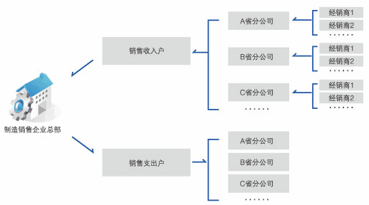 制造销售企业把各地销售分公司的“销售收入户”和“销售支出户”统一签约归集到自身名下,统一进行资金归集和划拨。如由总部直接管理销售渠道,则在账户归集时可由总部直接归集经销商对公账户或批量扣划各地经销商个人账户。